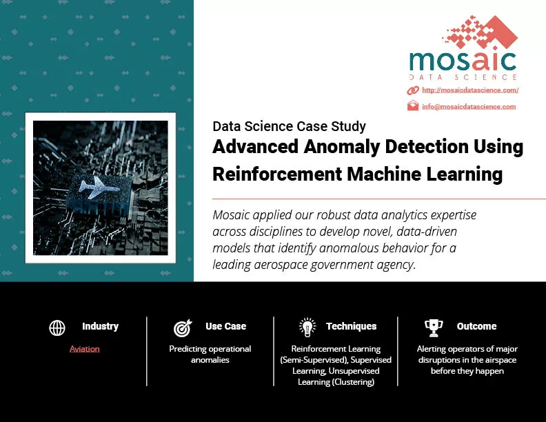 Mosaic applied our robust machine learning expertise across disciplines to develop novel, data-driven models for anomaly detection using reinforcement learning for a leading aerospace government agency.